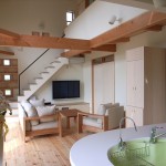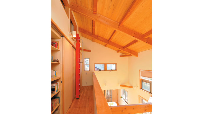 在来木造の構造に、無垢材で仕上げた吹抜けを組み合わせました。